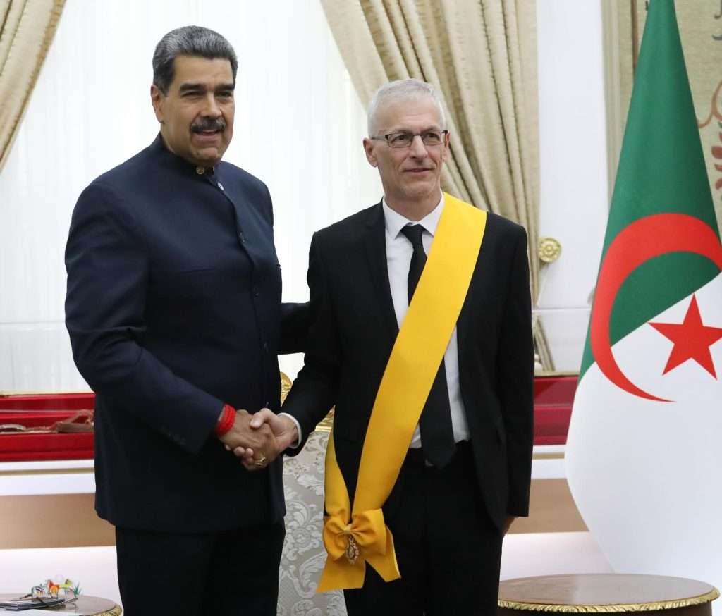Posteriormente, Maduro condecoró también al embajador de la República Argelina Democrática y Popular, Yacine Hadji, a quien agradeció su trabajo en el país y ratificó el compromiso de amistad de los dos pueblos.