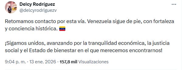 Otra noticia destacada de ayer es que los principales dirigentes del Gobierno anunciaron que volverán a utilizar la red social X (o sea, Twitter). Lo dijo la presidenta encargada Delcy, Diosdado Cabello, Jorge Rodríguez y Carmen Meléndez. Me imagino que otros también, pero estos son los más importantes.