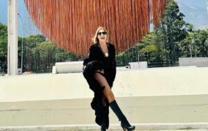 En esta oportunidad, la famosa venezolana, decidió hacer una parada en plena autopista, para admirar la escultura de arte cinético «Esfera Caracas Jesús Soto», del artista plástico venezolano Jesús Soto.