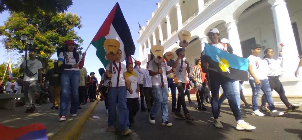 “Yo te digo Camarada”, “Humanidad” y “Coquivacoa” fueron entonando los pasos de los participantes desde la Basílica de la Chiquinquirá hasta la Plaza Alí Primera en la avenida El Milagro de Maracaibo.
