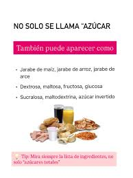 - Identifica los Terminados en «-osa»: Sacarosa, glucosa, fructosa, lactosa, maltosa… si termina en «-osa», es azúcar. Así de sencillo.