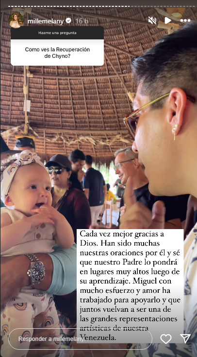 “Cada vez mejor gracias a Dios. Han sido muchas nuestras oraciones por él y sé que nuestro Padre lo pondrá en lugares muy altos luego de su aprendizaje”, respondió Mille a la pregunta de uno de sus seguidores.