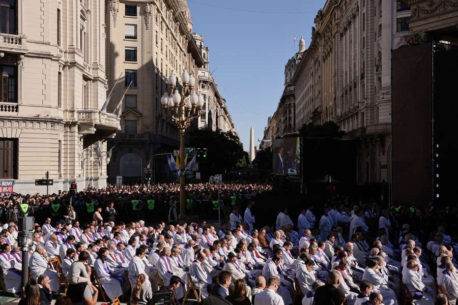 Asimismo, pidió valentía para llorar, parafraseando al papa, y manifestó que «hoy lloramos a Francisco. Lo hacemos desde lo más profundo del corazón, sin vergüenza, pero también con el dolor que nos une como pueblo. Que nuestras lágrimas rieguen nuestra patria para hacerla fecunda en reconciliación y en hermandad», refiere Página 12.