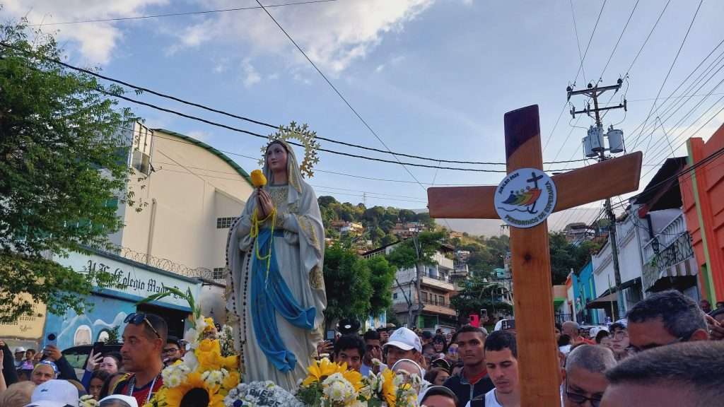 A las 6:00 a.m., los peregrinos emprendieron el recorrido por el histórico Camino de los Españoles, atravesando el majestuoso Waraira Repano. Durante la travesía de aproximadamente 20 kilómetros, la imagen de la Virgen fue llevada en hombros, mientras los fieles entonaban cánticos y rezaban con devoción. En puntos clave del camino, como La Venta, Guayabal y La Llanada, se realizaron momentos de oración y reflexión. En este último punto, en el corazón de la montaña, se celebró una misa especial donde los peregrinos renovaron su fe.