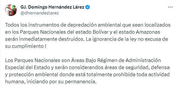 Estas acciones obedecen a las instrucciones de presidente Nicolás Maduro de combatir la minería ilegal que tiene un grave impacto sobre el medio ambiente.