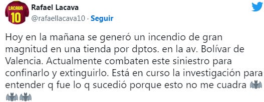 Ayer se quemó la tienda Traki de la avenida Bolívar de Valencia. Bomberos y Protección Civil se movilizaron y controlaron la situación. El edificio fue consumido por las lamas en al menso 80%, según el reporte de las autoridades de la tarde de ayer. No hubo heridos. El gobernador Rafael Lacava dijo que está en curso una investigación para saber qué provocó el incendió porque la cosa “no le cuadra”.