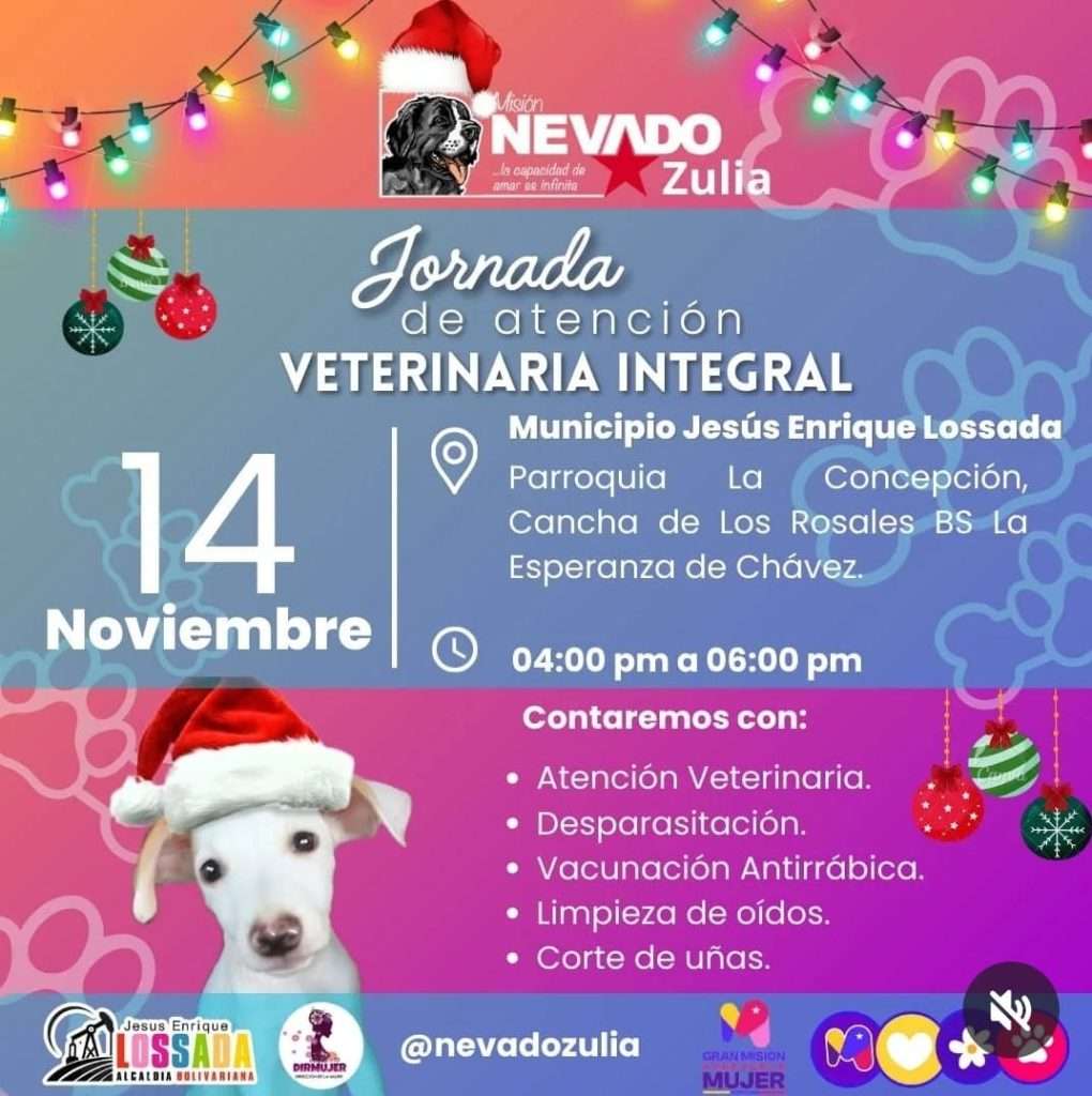 La Misión Nevado realizará una jornada de atención veterinaria integral en el municipio, San Francisco del estado Zulia, el próximo 30 de este mes.