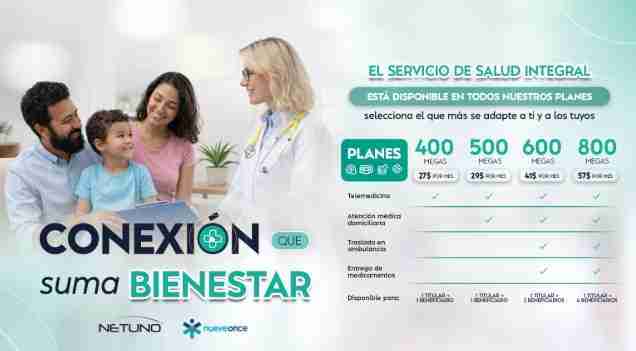 En el contexto de la reciente conmemoración del Día Mundial de la Salud, la empresa NetUno, en una apuesta por redefinir el valor de la conectividad en el hogar, ha anunciado la masificación de su Servicio de Salud Integral, integrándolo de forma directa en su oferta de planes de fibra óptica.