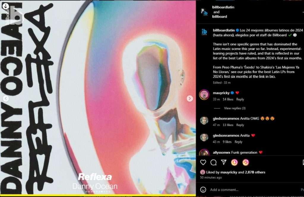 “Quizás el álbum más personal de Danny Ocean hasta la fecha. El cantautor venezolano brilla sonora y líricamente en ‘Reflexa’. En la producción de 1 pistas, Danny, que ha descrito su música como pop del futuro, navega a través de la vida de los temas más relacionables – angustia, lujuria, amor y el deseo de vivir auténticamente como uno mismo – con un sonido pop elevado que se fusiona con electro e incluso influencias de Oriente Medio”, destacó la publicación en la selección, que ubica al venezolano en el lugar 11 (en el primer lugar aparece Peso Pluma con ‘Éxodo’).