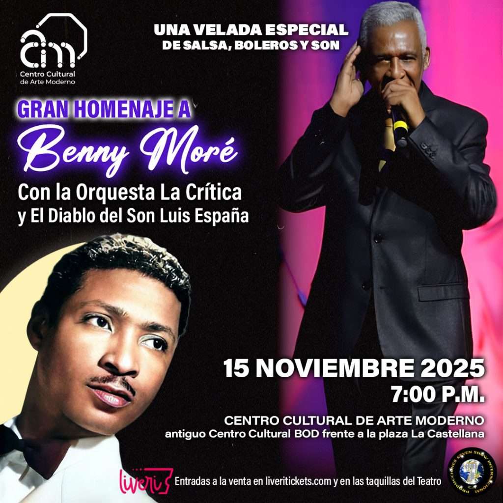 La cita con la memoria y la buena música tiene fecha el sábado 15 de noviembre, a las 7 p.m., cuando la Orquesta La Crítica suba al escenario del Centro Cultural de Arte Moderno de Caracas para celebrar la vida y legado del legendario Benny Moré, icono de la música cubana y caribeña, considerado una de las más grandes voces del siglo XX, también conocido como «El Príncipe del Mambo», «El Sonero Mayor» y «El Bárbaro del Ritmo».