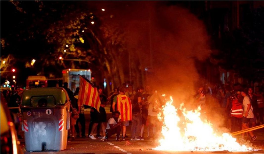 Como “guerrilla urbana” fue catalogada la toma del Paseo de Gracia barcelonés, donde al menos 40.000 personas con caras tapadas crearon barricadas, incendiaron contenedores y se generaron cargas policiales. En Girona, Tarragona o Lleida también se presentaron enfrentamientos.