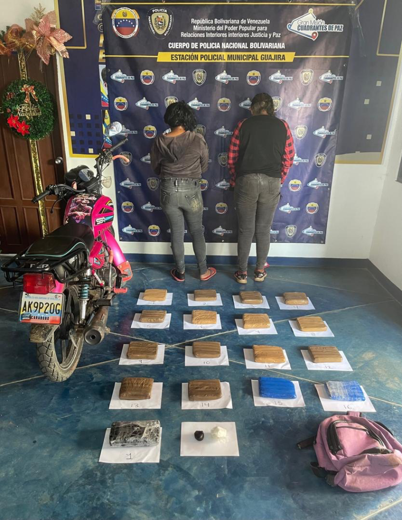 Agentes de la Policía Nacional Bolivariana (PNB) detuvieron a dos mujeres a quienes le incautaron 16 panelas de marihuana, según reportes.
