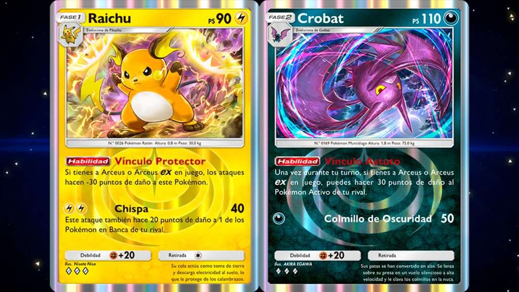 Además de mostrar a Arceus EX, el video del anuncio muestra algunas otras cartas que llegarán al juego, incluidas Raichu, Garchomp EX y Leafeon y Glaceon EX.