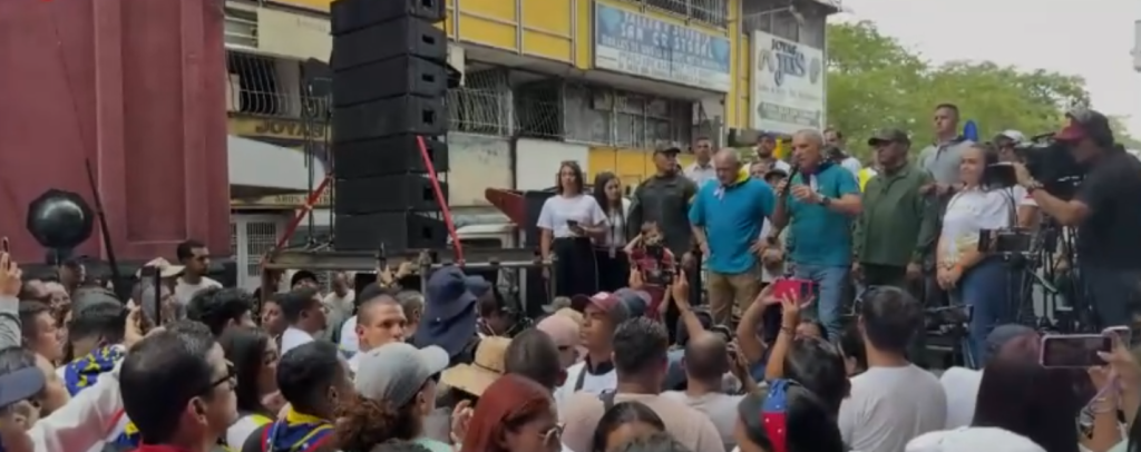 Tras llegar la movilización a la plaza Bolívar de la entidad, Cabello en tarima remarcó la importancia del cese de la campaña de odio pararetomar la paz en el país.