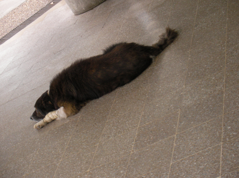 Leo descansa y muchas veces solo duerme, pero verlo mover la cola cuando me mira, me devuelve la alegría