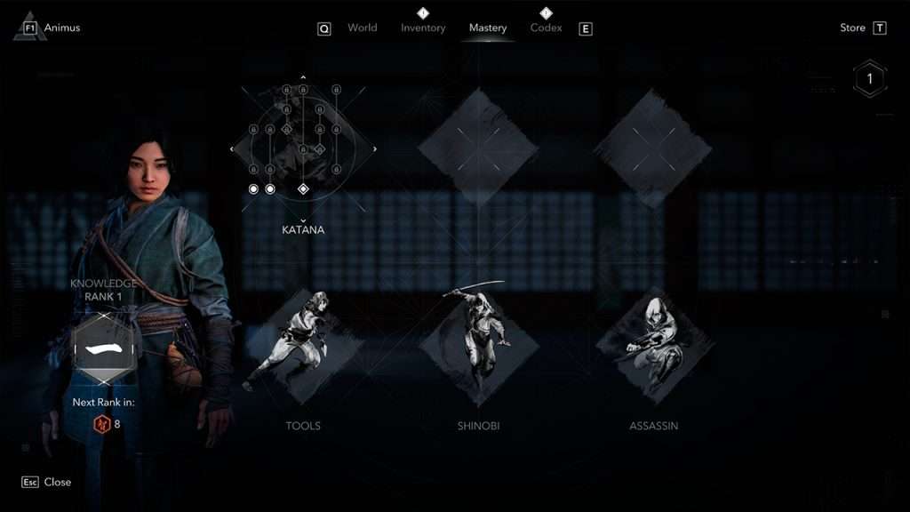Esta shinobi es como una sombra con esteroides: trepa tejados, lanza kunais, usa bombas de humo y hace que los guardias se pregunten “¿dónde está?” mientras ella ya les cortó el cuello. Representa el Assassin’s Creed clásico: parkour, asesinatos desde las sombras y esa vibra de “si me ven, ya perdí”. Su motivación es proteger su provincia, Iga, de las invasiones y el caos político, lo que le da un toque personal a su arco narrativo.