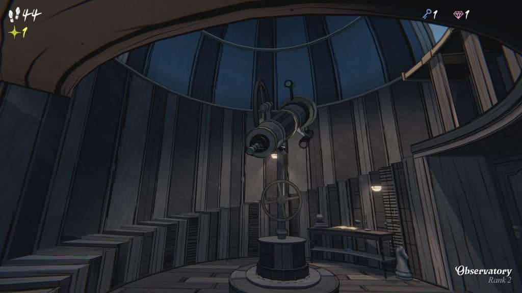 También contaremos con habitaciones mágicas y satisfactorias, como El Observatorio, a medida que avanzas, vas descubriendo nuevas estrellas, lo que no solo es visualmente precioso, sino que le da una capa de profundidad al misterio de la mansión que te motiva a seguir explorando cada rincón.