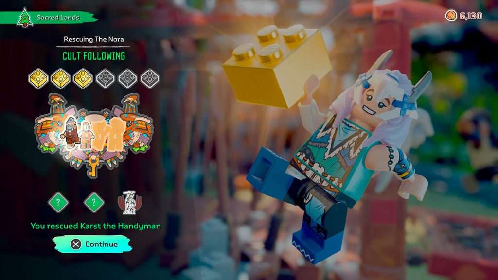 Los elementos de comedia se desarrollan bien desde las cinemáticas hasta en los diálogos que escuchamos en el gameplay, mi favorito siendo el diálogo de un cultista que dice “Mi mamá quería que escogiera una mejor carrera, pero no, tuve que meterme a cultista porque me gustó su programa de beneficios”. El esfuerzo de los actores de voz también ayuda a centrar el tono de diversión en todas las interacciones, en especial en una época en la que recordamos que los primeros juegos de Lego eran sin diálogos.