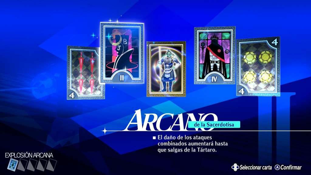 Lo que hace único a este título es el Shuffle Time (tiempo de barajado) post-combate. Tras una victoria decisiva, se despliegan cartas Arcana con bonificaciones. Esto te permite: obtener nuevas Personas, ganar más dinero, más experiencia o incluso curación del grupo. Si logras una racha de selección perfecta, puedes desencadenar Explosión Arcana, ofreciendo una recompensa masiva. Este sistema premia el riesgo y hace que incluso el farmeo se sienta fresco y emocionante.