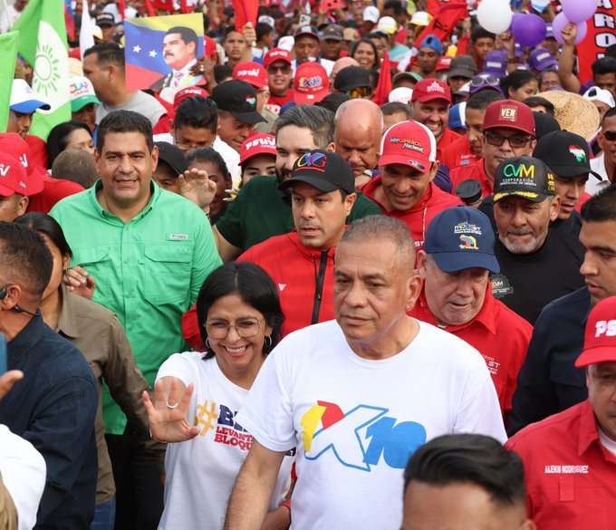 La gran marcha que trancó varias calles importantes de la zona, contó con la presencia de la vicepresidenta de la República y madrina del estado Bolívar, Delcy Rodríguez; el gobernador Ángel Marcano, el enlace del Psuv, Alexis Rodríguez Cabello; el diputado de la AN, Nicolás Maduro Guerra, y demás alcaldes bolivarianos.