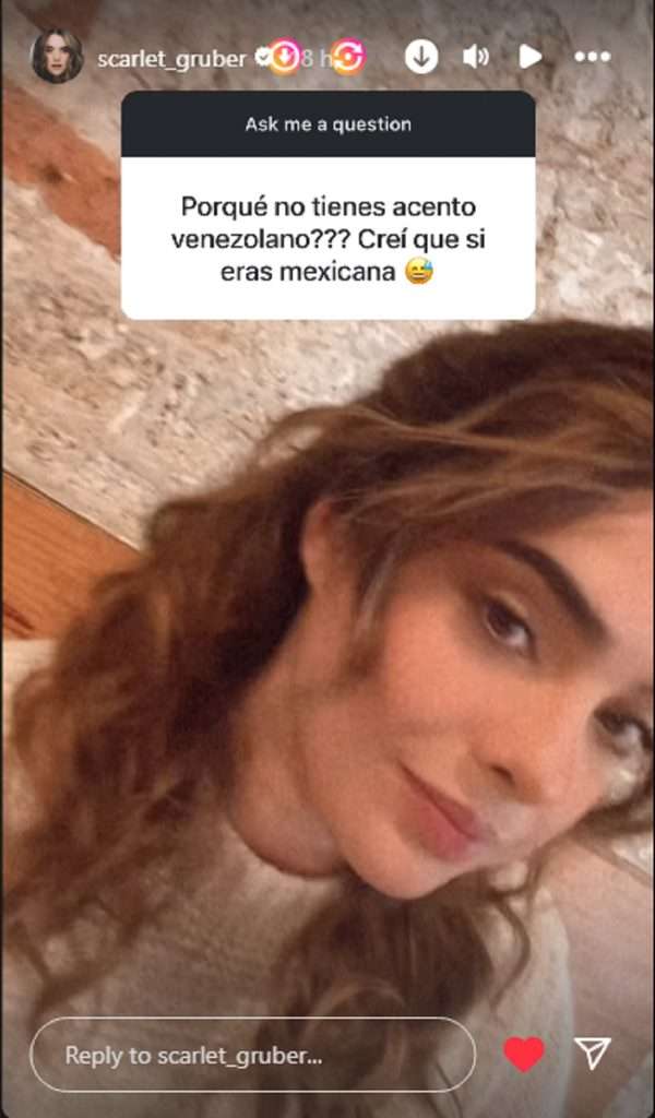 Scarlet Gruber ha desarrollado toda su carrera como actriz entre Estados Unidos y México, por lo que a nadie le extraña que muestre acento mexicano al hablar. Sin embargo, la artista caraqueña afirma que su cadencia suramericana sigue muy presente cuando no está frente a las cámaras.