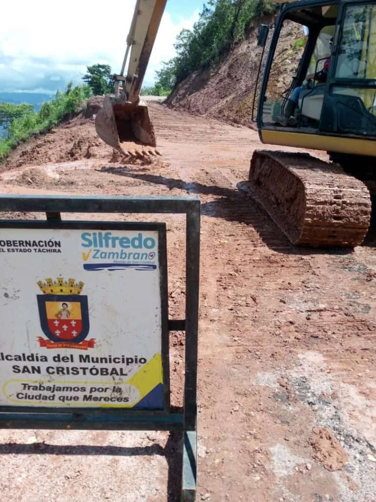 Trabajadores de la alcaldía de San Cristóbal restablecieron el paso en los sectores Chorro El Indio y La Blanca con obras de mantenimiento vial, ejecutadas con maquinaria pesada, para el despeje de sedimentos y material rocoso que obstruye parcialmente la vía a causa de las fuertes lluvias.