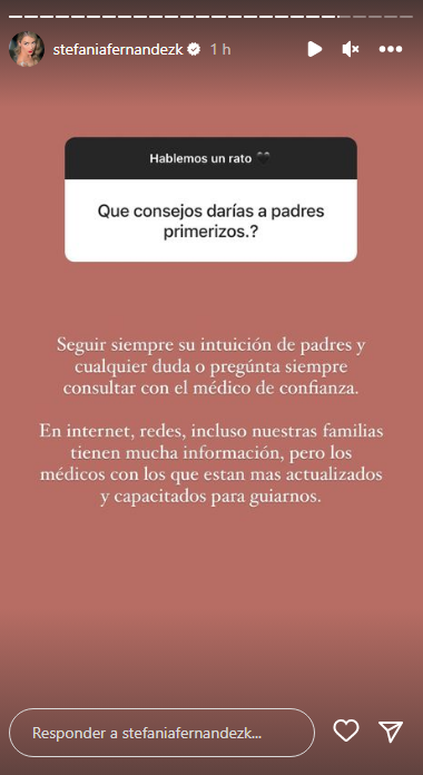 ¿Qué consejos darías a padres primerizos? “Seguir siempre su intuición de padres y cualquier duda o pregunta siempre consultar con el médico de confianza”, sugirió.