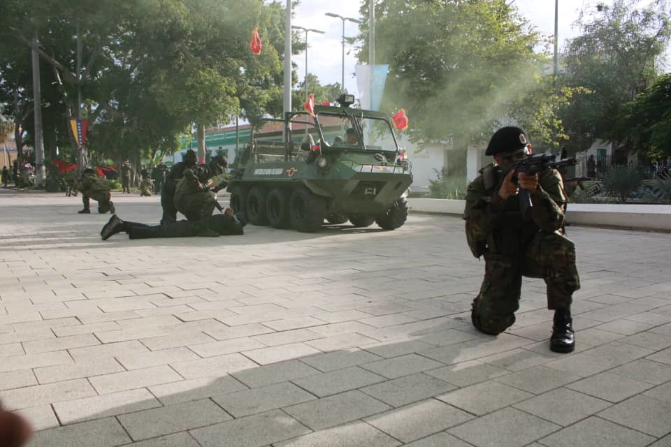 Durante la ceremonia la tropa de la Fuerza de Tarea de la Fuerza Armada Nacional Bolivariana (FANB) realizó una demostración militar sobre la capacidad, formación y táctica que poseen para defender la patria venezolana.