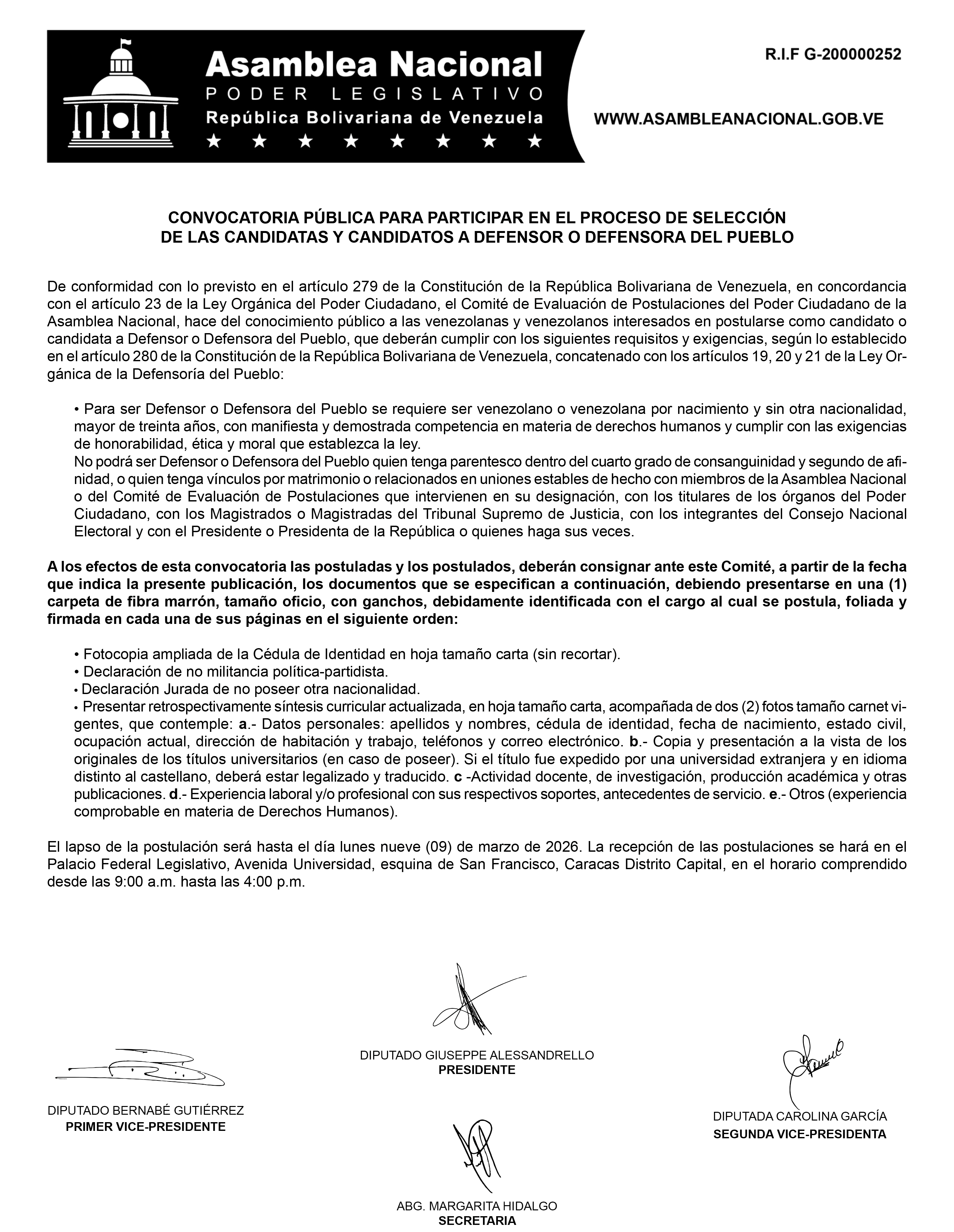El Comité Preliminar de Evaluación de Postulaciones para fiscal general de la república y defensor del pueblo publicó hoy los requisitos para postularse y el plazo para consignarlos. Los interesados tienen toda esta semana, hasta el lunes que viene. Aquí te dejo los carteles con la información: