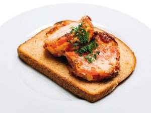 Lo metemos en el horno por 12 minutos aproximadamente, y luego desmoldamos sobre una rebanada de pan integral tostada. Para decorar agregamos un poco de perejil cortado muy pequeño.