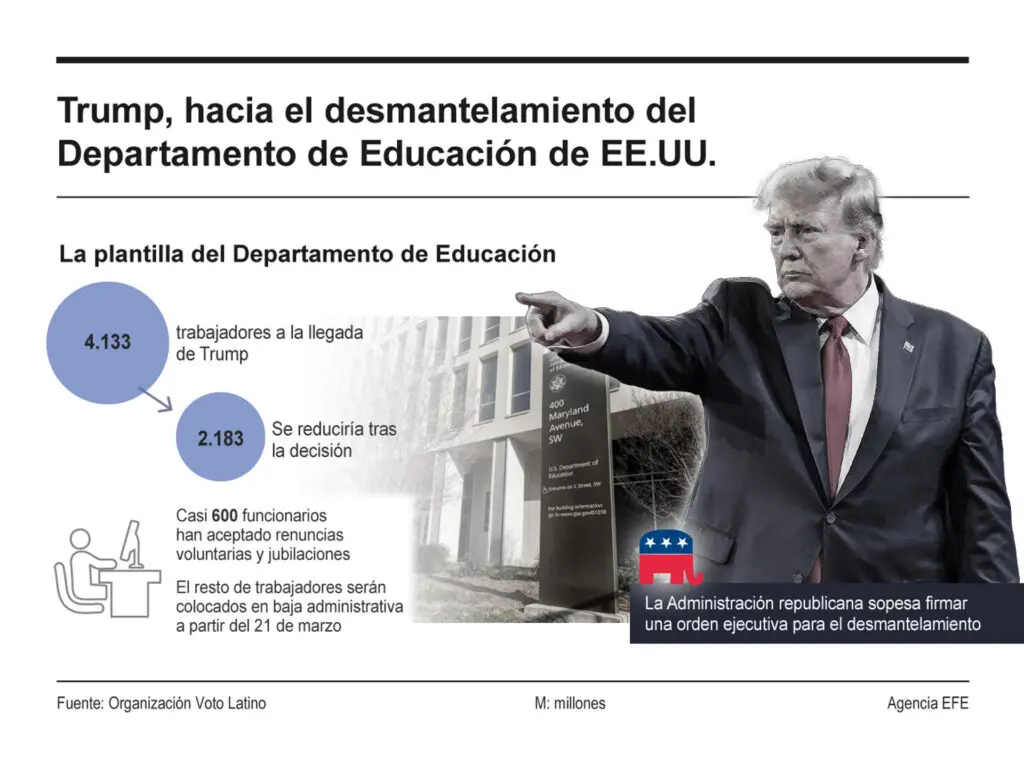 Si bien la eliminación absoluta del Departamento requiere la aprobación del Congreso, lo que deja en el aire el futuro de muchas de sus funciones, el jefe de Estado ha reducido su personal en un 50%, cancelado contratos y eliminado varios programas desde que inició su segundo mandato presidencial el pasado 20 de enero.
