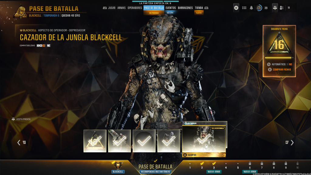 Recordamos también que apenas es adquirido Blackcell, tienes de 20 a 25 puntos de desbloqueo para gestionar en el pase de batalla, un buen impulso para adelantarlo.