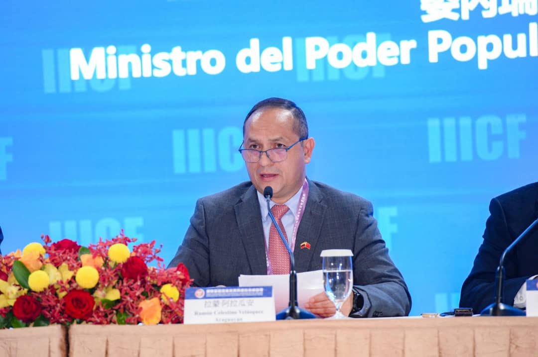 Así lo informó Araguayán en su cuenta twitter, en la que publicó “Tuve el honor de presidir en nombre de Venezuela el 14º Foro de Inversión en Infraestructura y Construcción que se realiza en China durante mi intervención transmití la disposición del Pdte @NicolasMaduro de establecer alianzas de cooperación e inversión con el hermano país”.