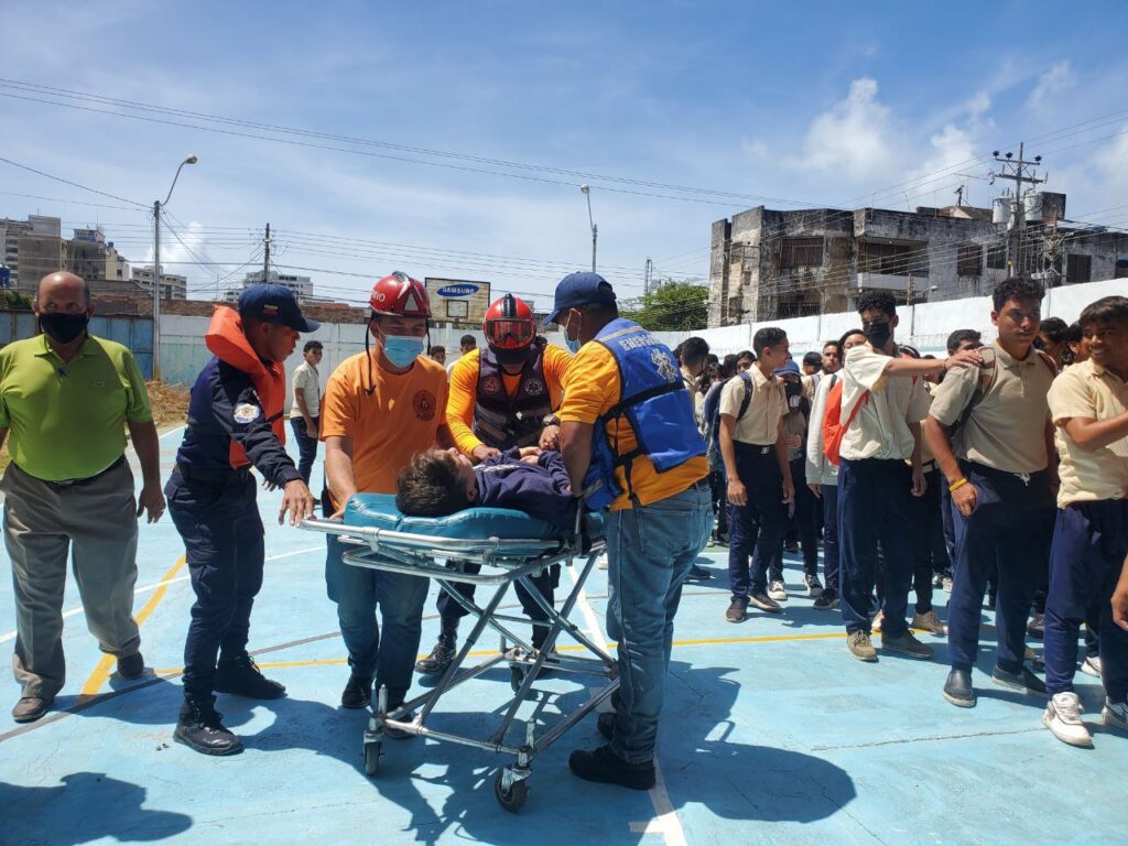 Useche apuntó que utilizaron herramienta y equipos varios de rescate, inmovilización y traslado. Participaron efectivos de la GNB, Cupaz, Protección Civil, 150 niños y niñas en edad escolar, 12 trabajadores administrativos y cuatro obreros del plantel.