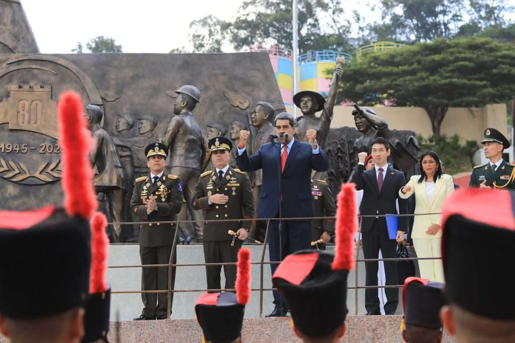“Si conmemoramos el 9 de mayo los ochenta años de la victoria del ejército rojo de la Unión Soviética frente a la Alemania nazi y fascista, sí, fue el ejército rojo quien rindió a los nazis en Berlín, hoy tenemos que decir que fue el ejército del pueblo chino quien rindió al imperio japonés y lo derrotó”, expresó el mandatario, acompañado de la vicepresidenta Delcy Rodríguez, el ministro de la Defensa, Vladimir Padrino López, y el embajador de China en Venezuela, Lan Hu.