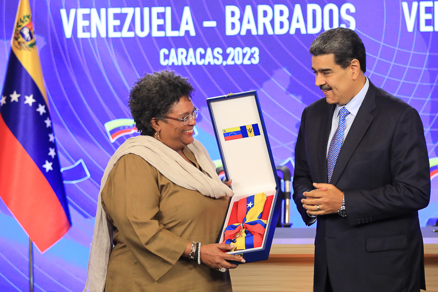 El Mandatario nacional entregó la Condecoración Orden Libertadores y Libertadoras de Venezuela en su Primera Clase a la Primera Ministra de Barbados, Mia Mottley.